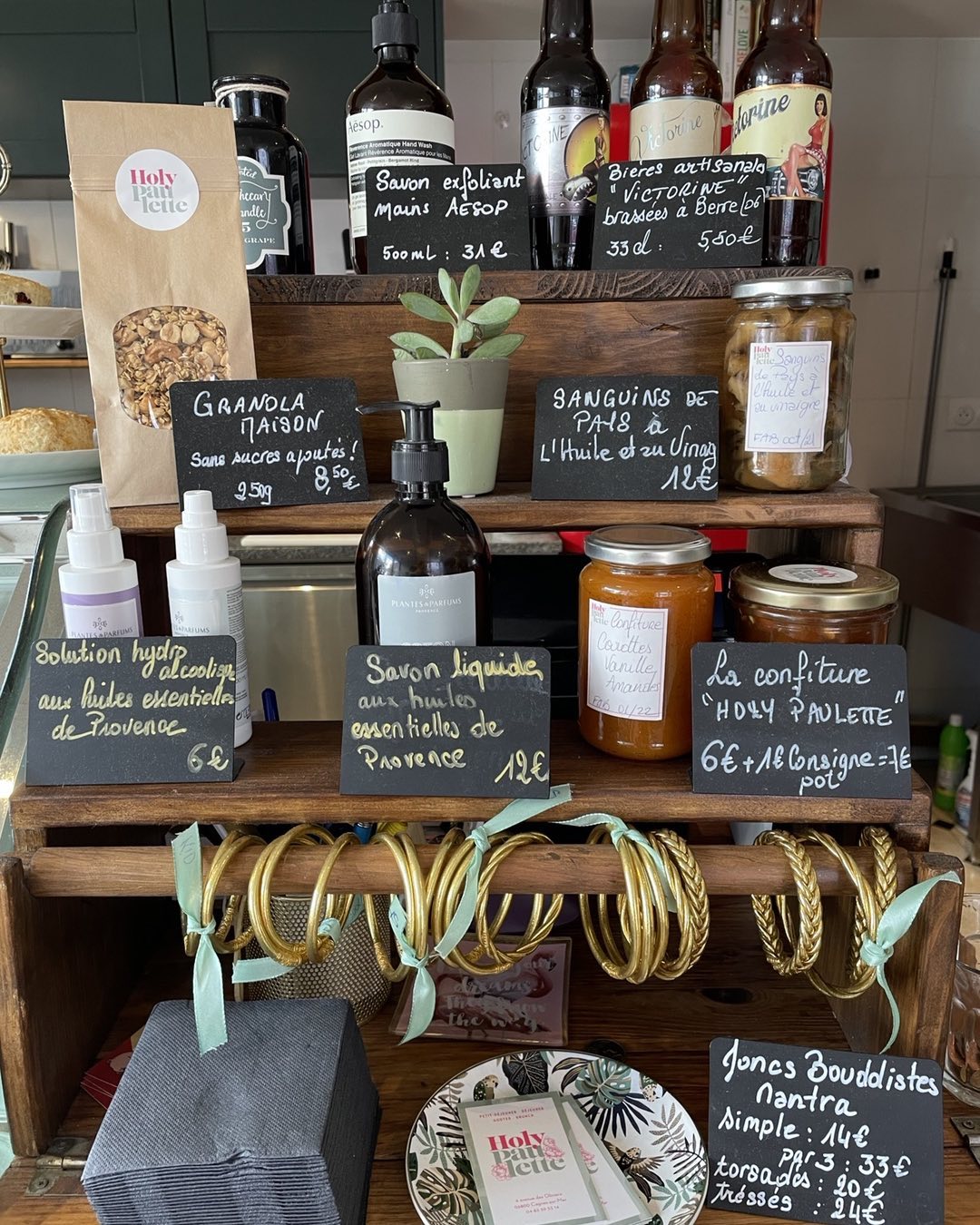 Nous avons imaginé un petit corner au sein du restaurant où vous pouvez retrouver nos créations maison ainsi que quelques produits coup de cœur soigneusement sélectionnés.